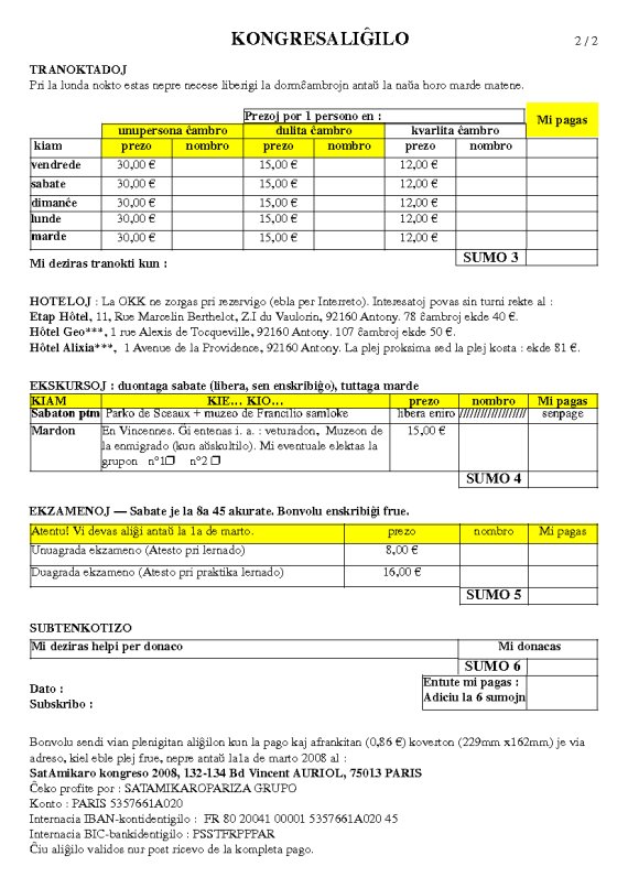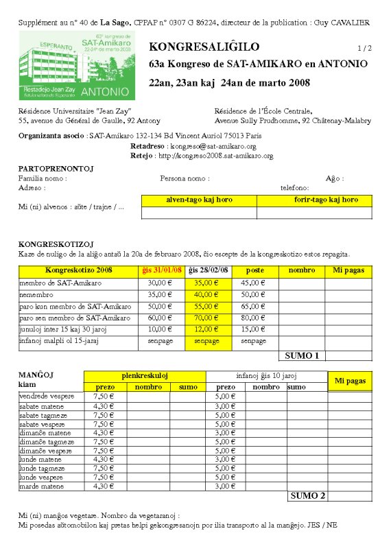 Kompreneble se vi ne povas printi la aliĝilon, ni sendos al vi paperpoŝte ekzempleron post simpla peto (vidu adresoj malsupre de tiu paĝo).
