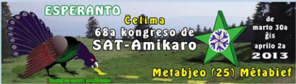 La tradicia kongresmarko, sub formo de kolora gluetikedo uzebla por ornami kovertojn ks, jam estas mendebla pere de la aliĝilo k rekte ĉe la OKK (vidu adreson paĝopiede). Jen ĝi (desegnita de S. Sir’, realigita de J.F. Blin) :