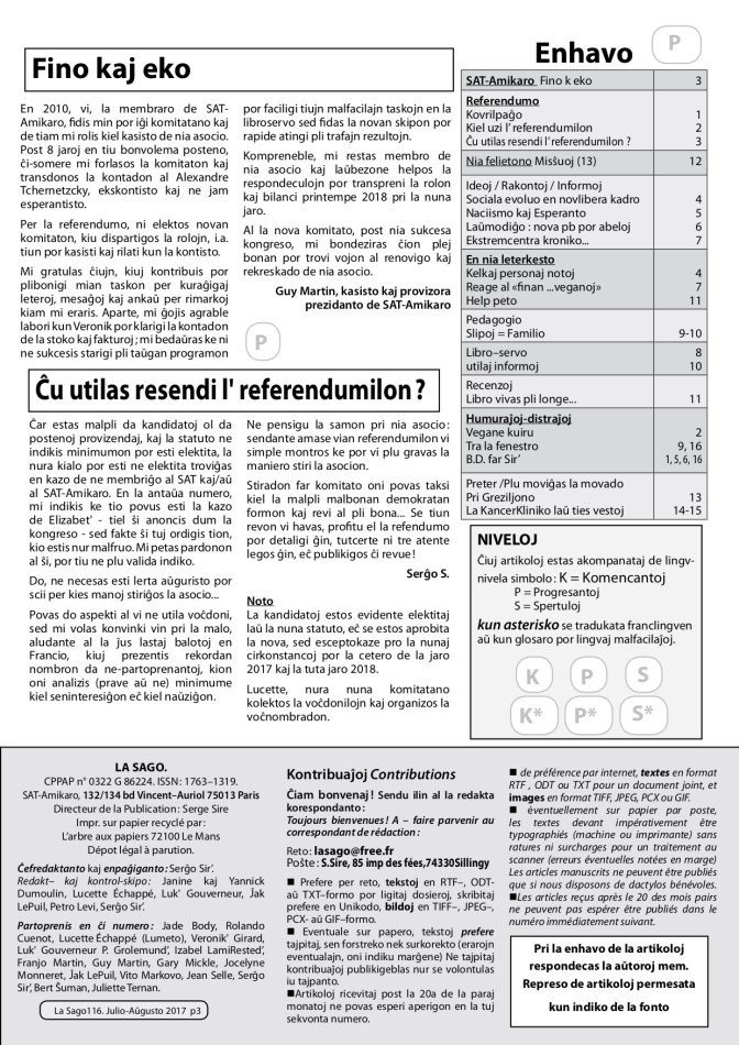 La sago 116 (julio- aŭgusto 2017)