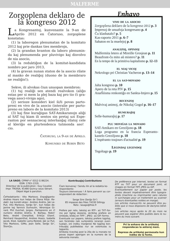 Déclaration du Congrès 2012 de SAT, association mondiale de travailleurs espérantistes