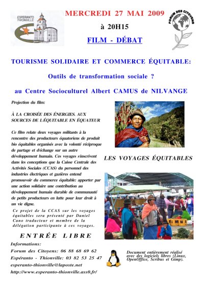 Espéranto-Thionville et le Forum des citoyens organisent mercredi 27 mai à 20h15 une projection-débat au Centre Socioculturel Albert CAMUS de NILVANGE sur le thème :