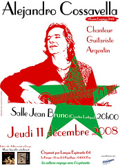 L’association Langue Espéranto 64 et EUROKKA oraganisent une soirée conviviale et musicale avec Alejandro Cossavella (ou plus facilement Alé Kosabela), le jeudi 11 décembre à 20h00 à la salle Jean Bruno (Quartier Lartigue) de Pau.