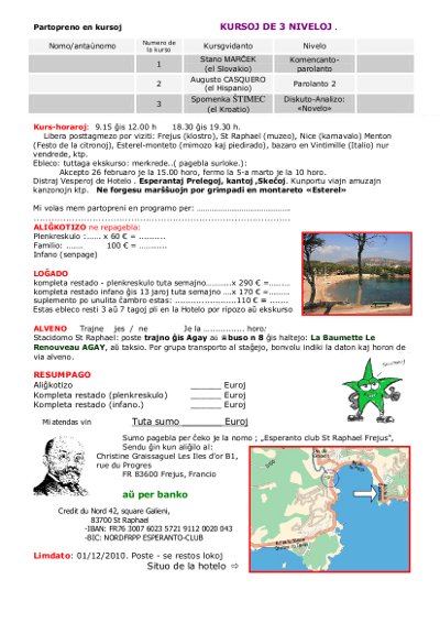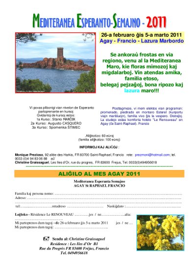 Du 26 février au 06 mars aura lieu la traditionnelle Semaine Méditéranéenne d’Espéranto à Agay (Sanit-Raphaël).
